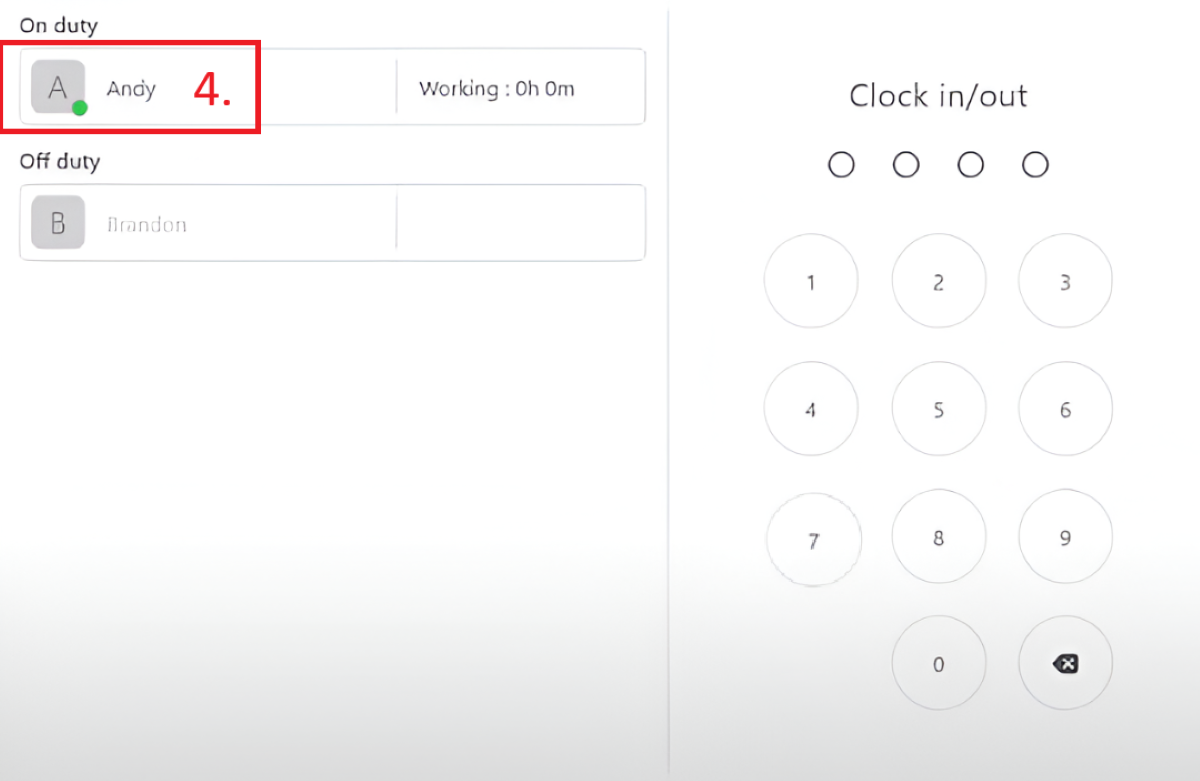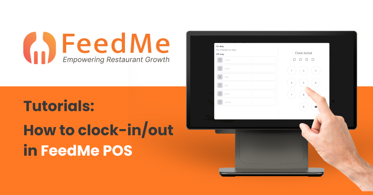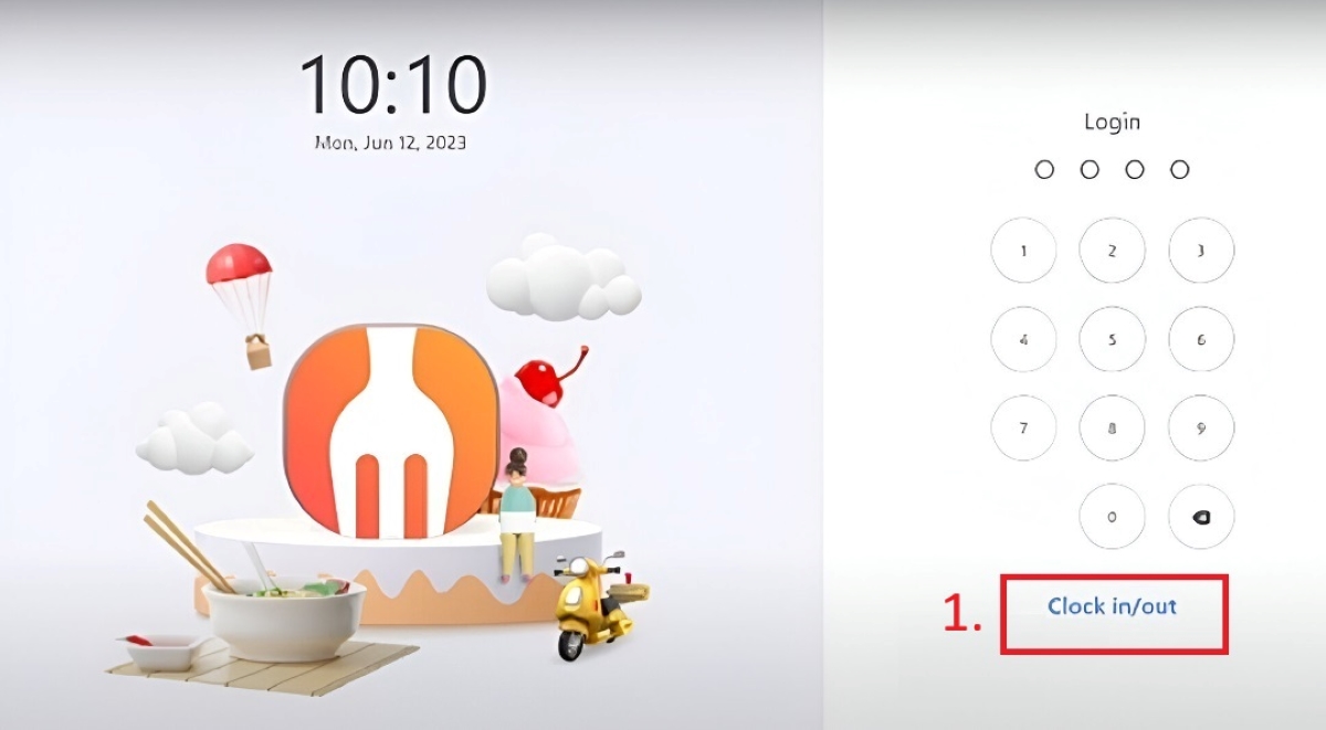 (1) First, you can find the clock in / out on the FeedMe pos before login, click the “Clock in / out”.